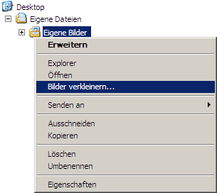 Klicken Sie auf dem betreffenden Verzeichnis (oder auf einer .jpg-Datei) auf die rechte Maustaste und rufen Sie "Bilder verkleinern..." auf: